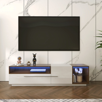 Mueble de TV LED de alta calidad para televisores de todos los tamaños con almacenamiento Mueble de TV moderno con estantes de vidrio ajustables