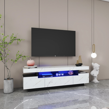 Mueble de TV moderno, muebles de sala de estar, soporte de TV de alto brillo, gran capacidad de almacenamiento, encimera de TV